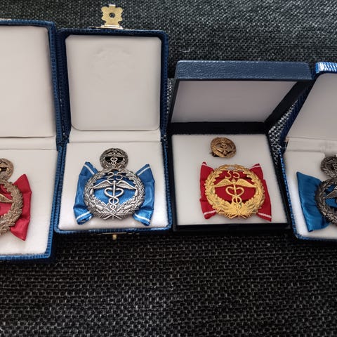 Hopeinen Ansiomerkki. Halkaisija - 17 mm. Rasiassa.