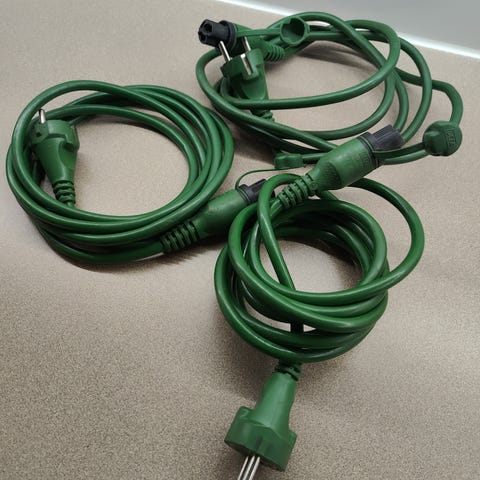 Myydään Defa-lokilämmittimen johto, pituus 2,5 m. Kuvassa on kolme eri johtoa, mutta yksi vihreä johto on jo myyty. Yhden johdon myyntihinta on 6 €. Nouto Jäälistä