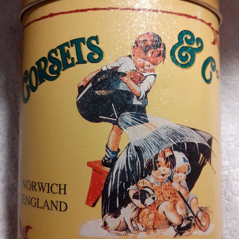 Upea kannellinen peltipurkki, sisältänyt toffeeta. Melko vanha.