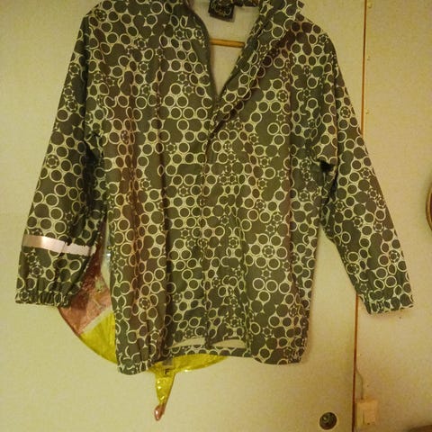 Vihreä napeilla 160cm, ei taskuja, kiinteä huppu.
