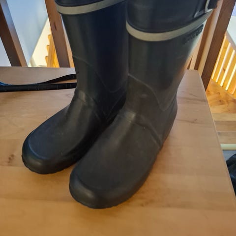 Punaiset kumisaappaat.