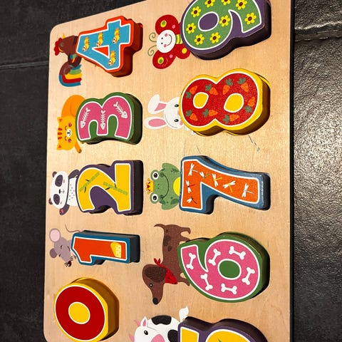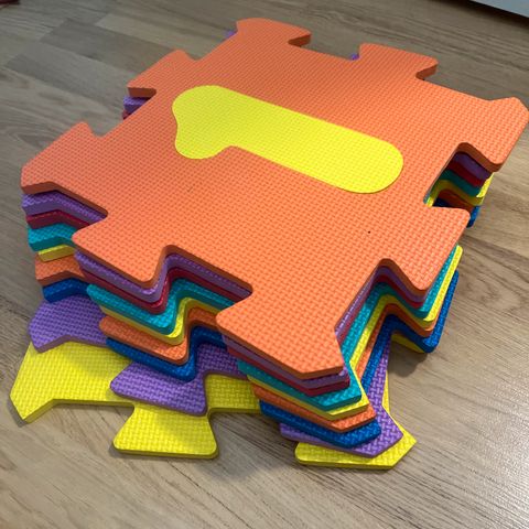 Isoista paloista koostuva numeromatto numerot 0-9. Vaahtomuovipalat joiden koko 31x31cm, irrotettavat numerot. Joitakin käytön jälkiä (katso kuvat), mutta nämä lähinnä lattiaa vasten olevalla nurjalla puolella.