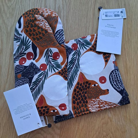 Kuvan vasemmalla oleva Marimekon pannulappu / patakinnas. Haku sopii hyvin myös esim postitus onnistuu