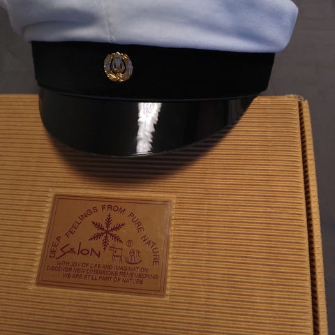 *- myös toinen lakki samaa kokoa, samat tiedot, vähän kellastuneempi, hinta 5€.