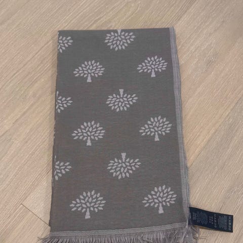 Mulberry villahuivi. Strassikoristelu logo. Pituus n. 160cm hapsuineen, leveys n.29cm. Kaapin karsintaa eli käytetty siisti, pesu jää ostajalle. Nouto tarkka aika etukäteen sovitusti ma-pe kl. 10-16 Hki88 tai postitse pakettina.