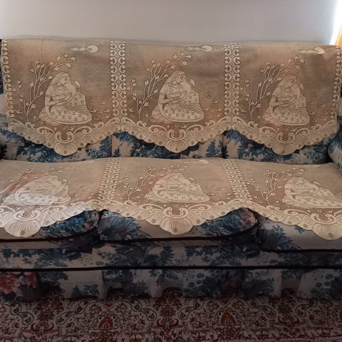 Myydään vierashuoneessa olleen, käyttämättömän, kahden henkilön sohvan muotoonommeltu päällinen.