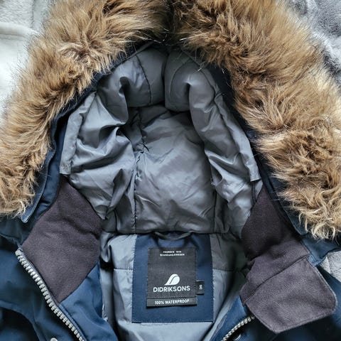 Myydään Didriksonin parkatakki, koko 36. Sisällä osittain karvavuori. Postitus mahdollista ostajan kustantamana.