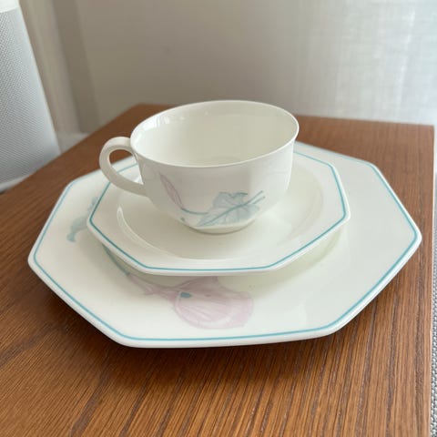 Kyseessä on käyttämätön Villeroy&Boch:n Florea astiasto. Sisältää 6 kpl kuppeja (+ lautaset), 6 kpl asettia, kannu, kerma-astia, sokerkulho. Kaikki alkuperäispakkauksissa.