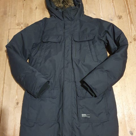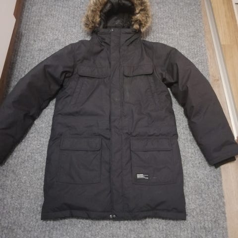 Yleisilme siisti, etutaskussa ja hihojen sisäsaumoissa tummentumaa. Vetoketjun vetimestä pidempi osa katkennut, mutta toimii pätevästi renkaasta vetämällä. Koirakoti.