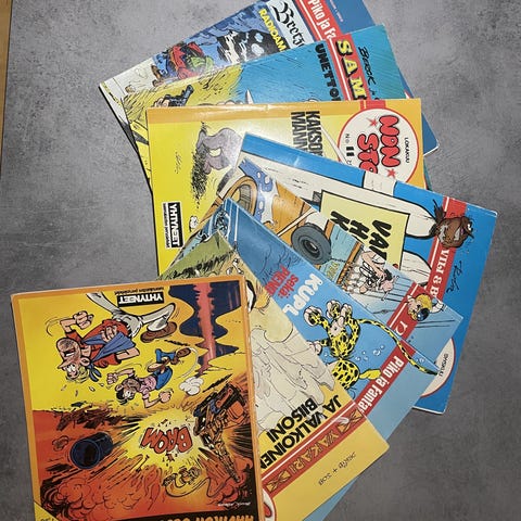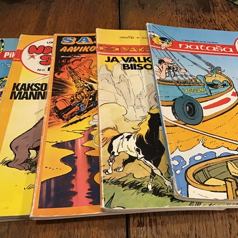 Ensipainokset vuosilta 1978 - 1979. Joitakin tahroja ruutujen ulkopuolella, joista esimerkit kuvissa. Ehjät. Vili ja Bill - taitos takakannessa (näkyy kuvassa). Sammyt ovat virheettömimmät Yhteishintaan 28€ tai 9€/kpl.