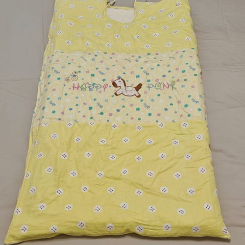 Makuupussi, nepparit, joista saa alaosan irroitettua. Yläosaa voi käyttää takkina. Koko 62/68 cm.