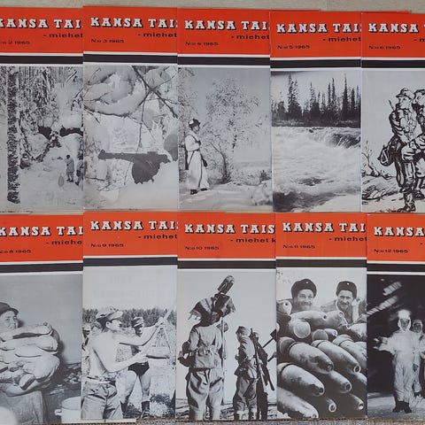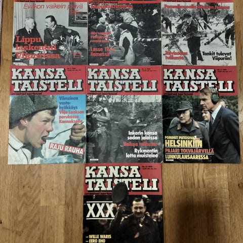 Nippu Kansa Taisteli -lehtiä. Lehdet ovat ikäisekseen erittäin siistikuntoisia, mahdolliset pienet viat on mainittu erikseen kunkin lehden kohdalla. Osoitetarra on paikallaan suurimmassa osassa lehtiä. Jäljellä olevat yhteensä 30 euroa, yksittäiskappaleet neuvoteltavissa.