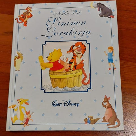 Walt Disneyn Nalle Puh lorukirja jossa vanhoja tuttuja lastenloruja iloisella kuvituksella.
