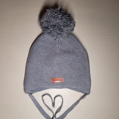 Metsolan merinovillapipo koossa 1-2. Meillä 2,5 vuotiaalle pieni eli suosittelen n. 1 vuotiaalle. Käytetyssä kunnossa. Nauhat kaipaa vaihtoa. Yleisilme siisti, mutta takapuolella pieni kosmeettinen haitta. HP 10 e.