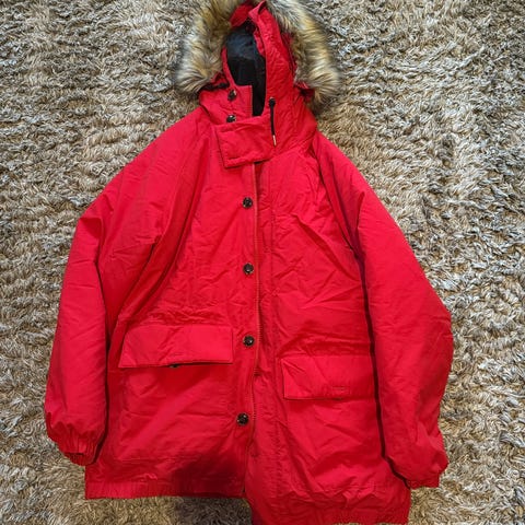 Denimtakki painatuksella ja teddy-vuorella. Vastaa hyvin miesten S-kokoa. Olka-olka 49cm, kainalo-kainalo 59cm, pituus 65cm.