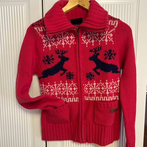 Tummanpunainen erittäin laadukas Peak Performance -merkkinen villapaita 100% villaa. Koko XS, mutta menee hyvin S-kokoiselle sekä tyköistuvana M-kokoiselle.