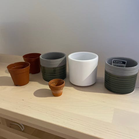 Ostettu Plantagen, 4 kpl mustia kukka-amppeleita