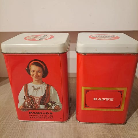 4 kpl punaista ja 2 kpl valkoista kahvipurkkia. Ehjiä, osassa on saranat jotka toimivat.