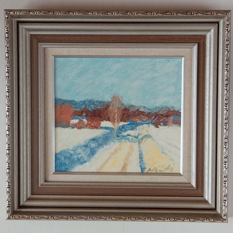 Taiteilija Armas Hurstin maalaama upea öljyvärimaalaus kankaalle maalaismaisemasta.
