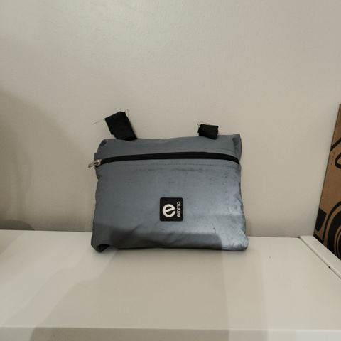 Sadesuoja on pakattu kätevään, oranvihreään säilytyspussiin, joka löytyy helposti mustasta hoitolaukusta tai tavarakorista. Säilytyspussin voi kiinnittää siinä olevan kuminauhan avulla vaikka vaunun runkoon. Näin sadesuoja kulkee aina kätevästi mukana.