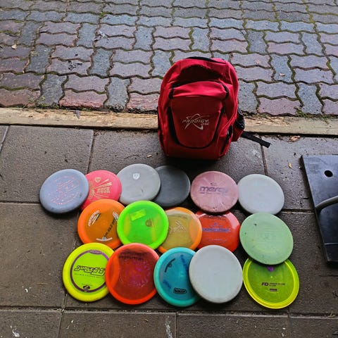 Hyvä kuntoinen reppu kiekoilla myyntiin.