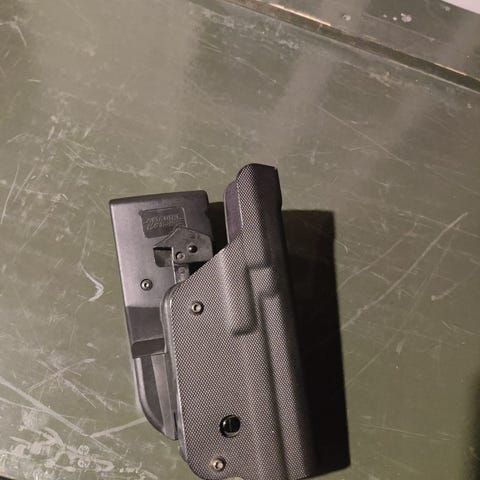 Myydään glock 17/19 pöytäteline. Sisältää vain tyhjän telineen.
