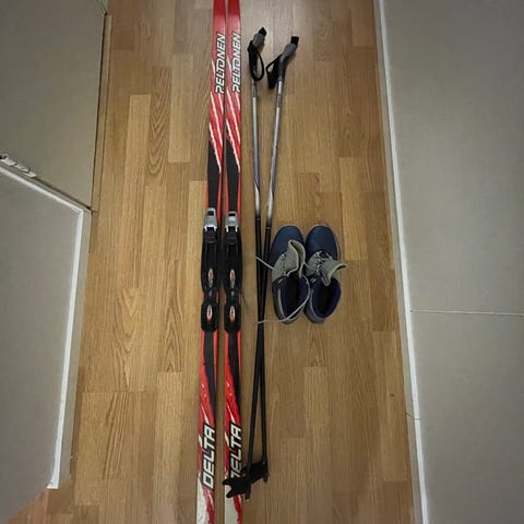 Sukset ( Peltonen , 206 cm ) + suksisauvat + monot