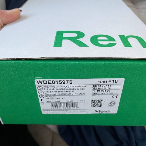 Ylimääräiseksi jäänyt käyttämätön pistorasia Schneider IP 44 kaipailee uutta kotia. Soveltuu esimerkiksi kylpyhuoneen tai wc:n pistorasiaksi.