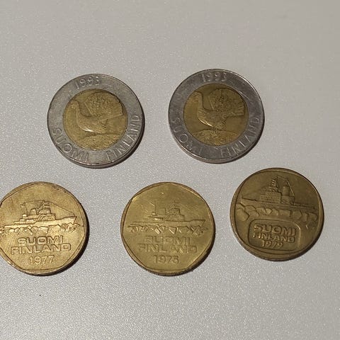 Myydään 5 MK, 10 MK ja 2 € kolikot avaamattomissa kovamuovi kapseleissa. Rahojen laatuluokka 0. Myynti yhteishintaan.