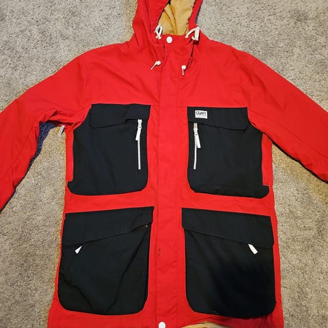Myydäään miesten Nike ACG -merkkinen laskettelutakki. Koko on M. Kainaloissa/kyljissä on vetuketjuilla avattavat tuuletusaukot. Helmassa on lumilukko. Takissa on reilusti taskuja.