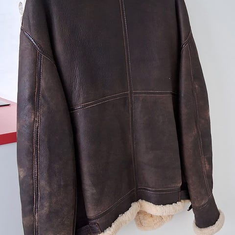 Hyväkuntoinen 100% aito shearling päällystakki, sisäpuolella lämmittää sileä lampaankarvavuori.