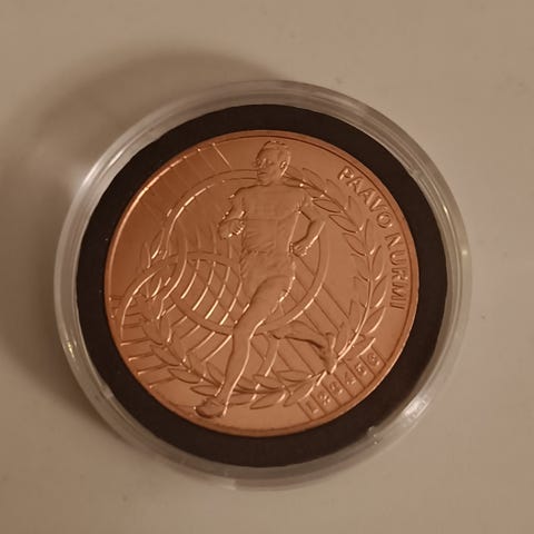Tarjolla 20 kpl Paavo Nurmi 120 vuotta (1897 - 2017) jetoni eli muistomitali. Julkaisija Suomen Moneta. Hinta 2 €/kpl tai 10 €/ 10 kpl.