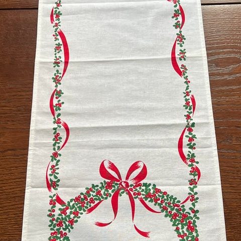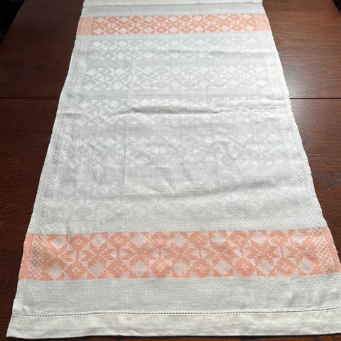 Joulunpunainen kaitaliina puolipellavaa ns ripsisidoksella 80*31cm, siisti, puhdas ja tahraton. Savuton ja lemmikitön koti
