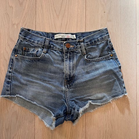 Vaaleansiniset Zara Premium Demin wear farkkushortsit. Koko 34. Niittejä edessä ja takana. Hennosti revityt. Lyhyt malli. Lahkeen pituus 25cm. Ehkä hieman Jenkki - Amerikka tyyliset. Vyötärön leveys 35cm.