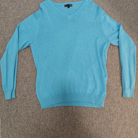 Valko-sini-harmaa L kokoinen neulepaita.