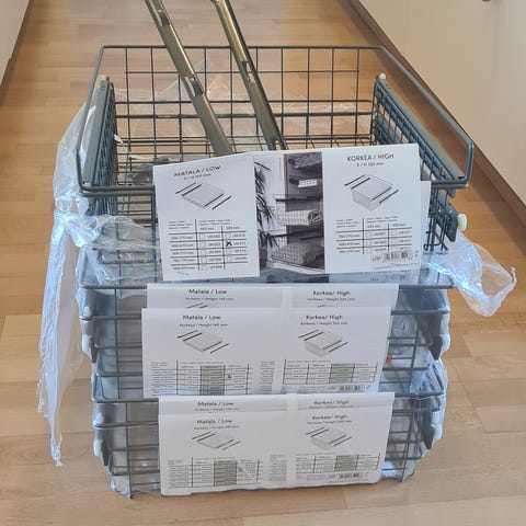 Laadukas uusi rullakori L60, valkoinen + kiskot - 2 kpl/setti