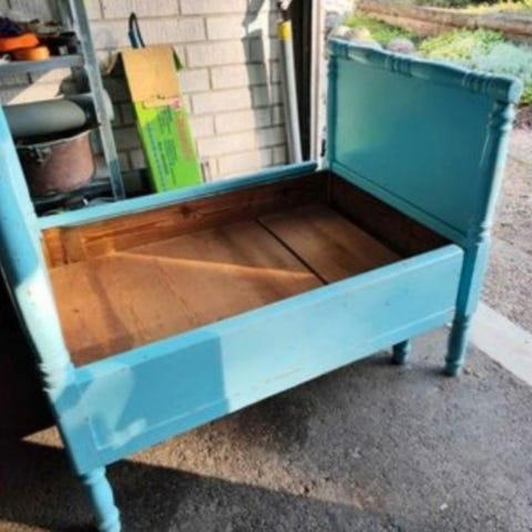 Maali hieman kulunut mutta sopii tyyliin. Kaunis vanha sänky, joka sopii taaperosta koulukäiseen asti. Nouto Turku, Martti