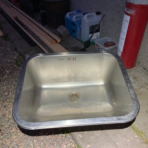 Uusi bauhausista ostettu tupla allas. Oli meille liian suuri ja nyt jo pienempi tilalla.