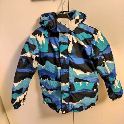 Uusi pieneksi jäänyt toppatakki, kauniit värit, turkoosi, lime, harmaa, musta, värit ja malli sopii pojille ja tytöille.