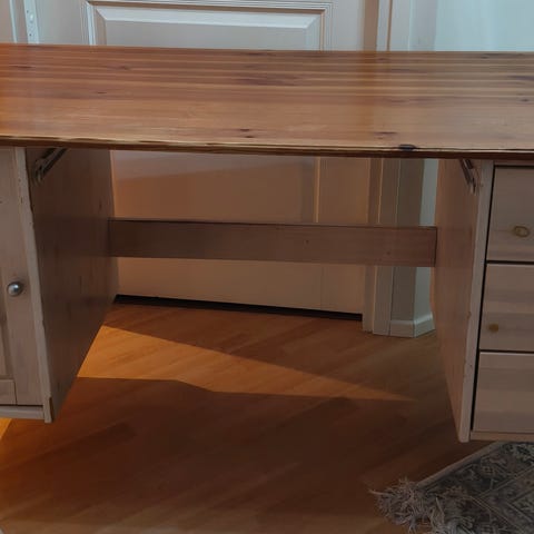 Työpöytä kumipinnalla. Alla vaneri