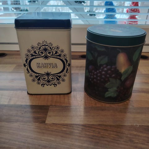 Peltipurkki, korkeus 16cm. Erittäin hyvä kunto, sopii käyttöön.