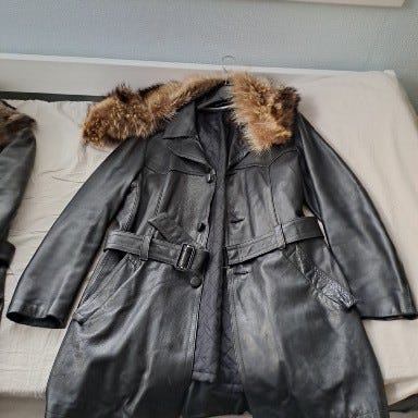 Kotimainen toffeensävyinen vanha retro nahkatakki. Valmistaja Kokkola Mokka-Nappa. Takissa koko maininta 46, takki paljon pienempi, vastaa ehkä kokoa S. Kunnoltaan täysin ehjä, haalistumaa nahassa on, sisävuori ehjä. Vetoketju kiinnitys, ketju on jäykähkö. Hihansuissa ja takin alaosassa ehjät resorit. Lämpimässä varastossa säilytetty.