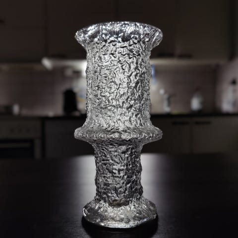 Muottiin kiinnipuhallettu ja suuhiottu lasi.