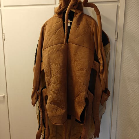 Harmaa, pehmoinen naamiaispuku huppu on ihan tavallinen. Kerran käytetty