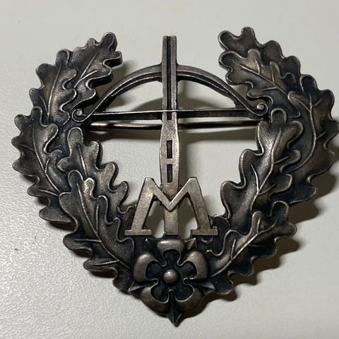 II luokan Mannerheim-solki. Hopeavärinen. Halkaisija - 44 mm.