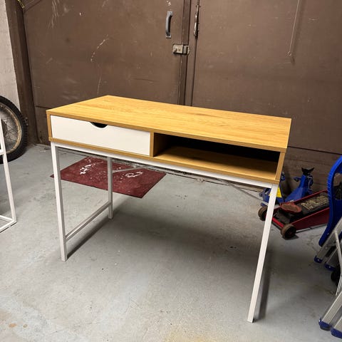Työpöytä, säädettävä korkeus ja työvalo. Koko 150 x 75 (cm)