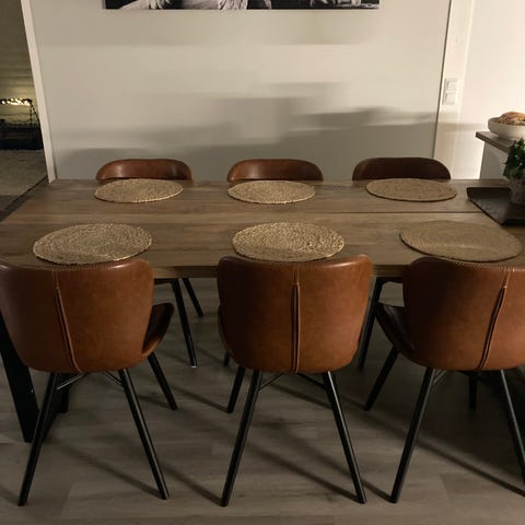 Myydään pöytä ja 8 tuolia lähes uutena, myös jatkoa pöydälle. 1300€