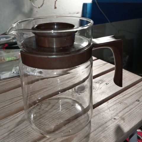 Lasinen pannu ja suodatin.