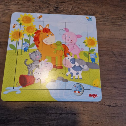 Puinen siistikuntoinen muumikuvioitu nuppipeli, 8 palaa.