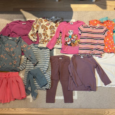 Siisti ja hyväkuntoinen vaatepaketti tytölle 92 cm (Ryhmä Hau pitkähihainen paita, 2 sarafaania/hihatonta mekkoa, takki+housut/puku, farkut ja hoisut).